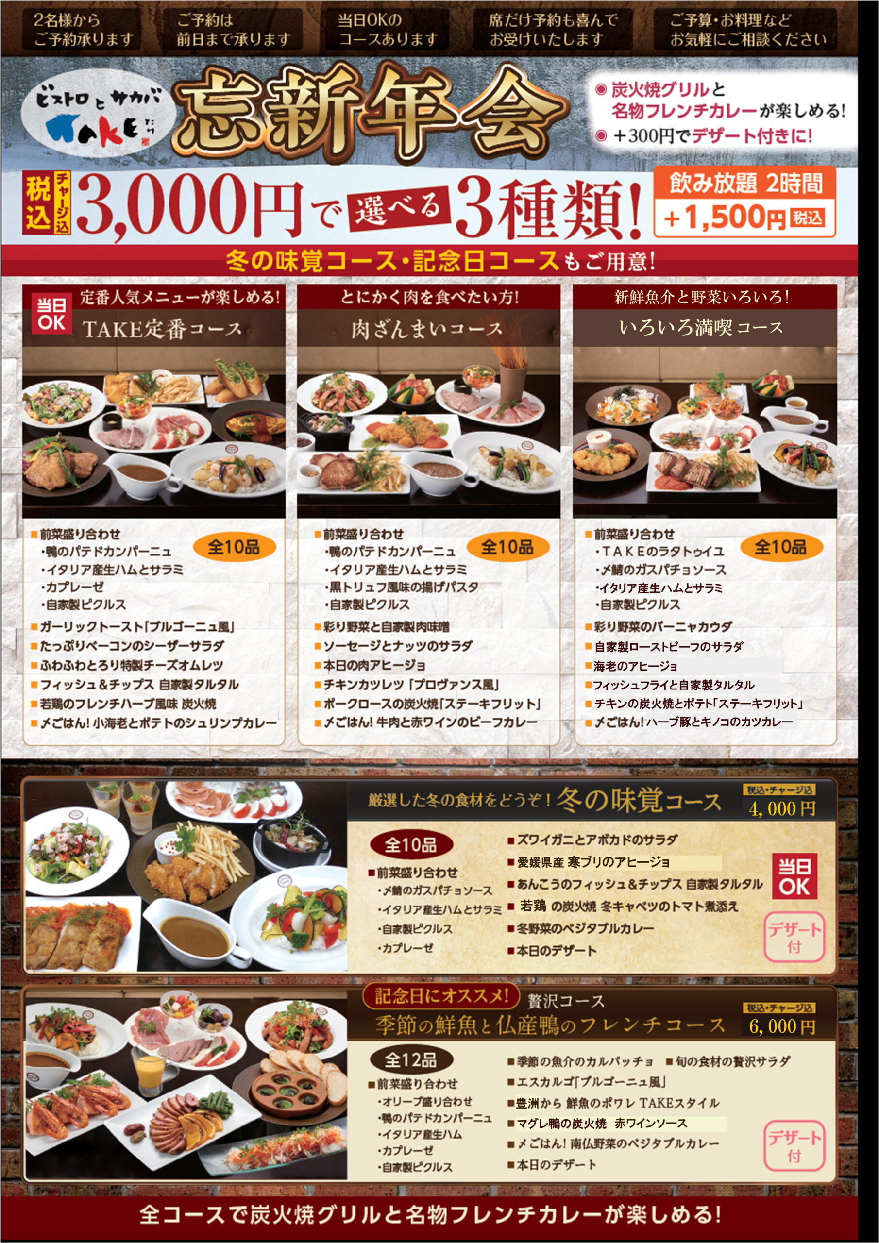 ⭐️TAKEではお得で美味しいコース各種ご用意してます!.